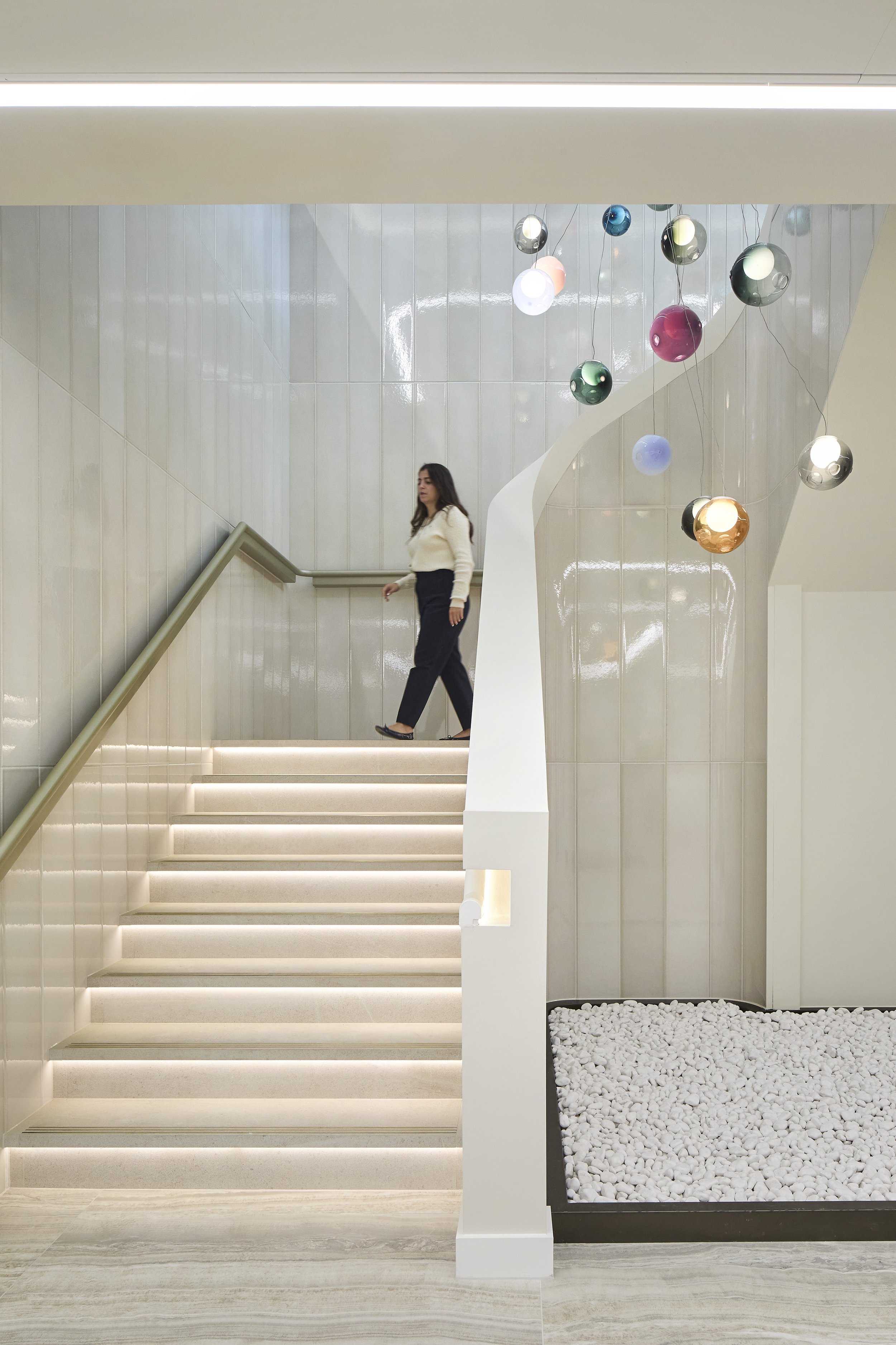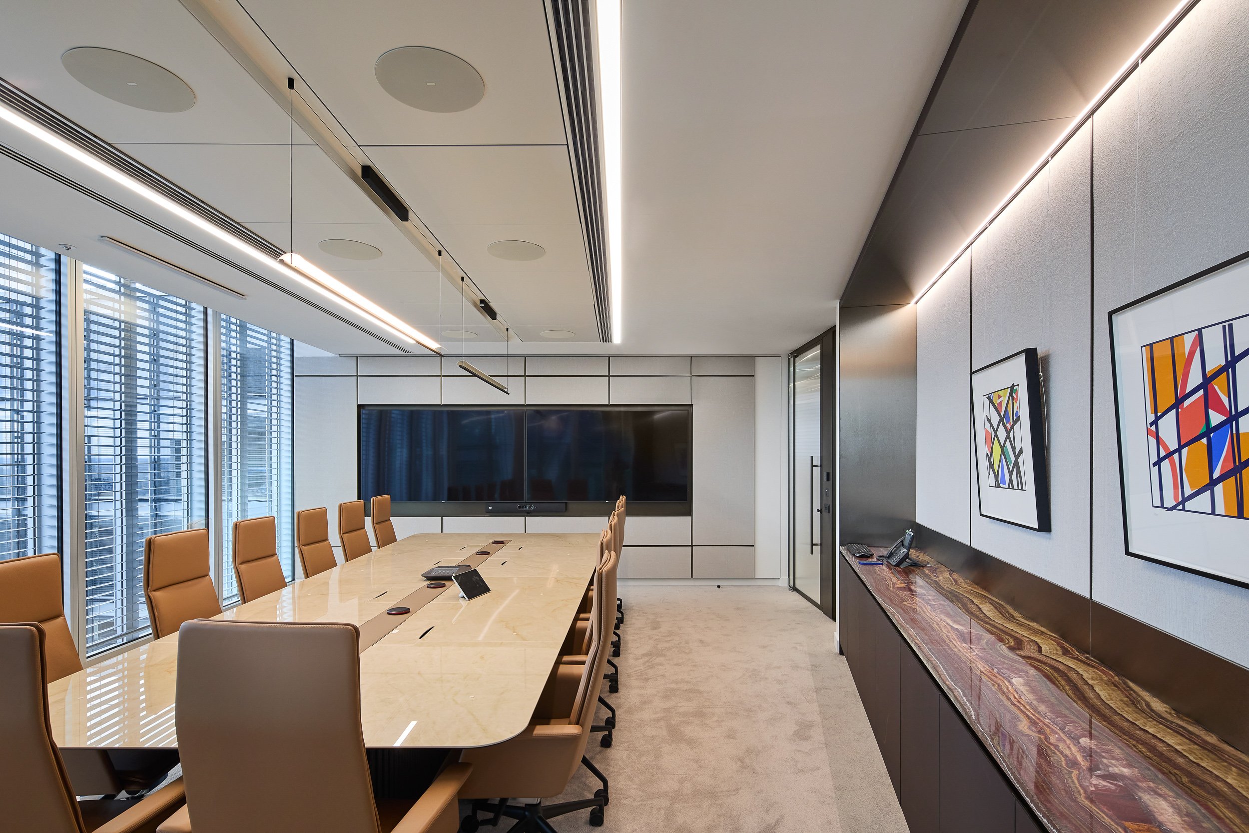 With materials ranging from stunning bookmatched Onyx in the meeting rooms, to tile and clay finishes on the Hub feature walls, the project required precise coordination and technical expertise to achieve a result that remains striking yet functional.