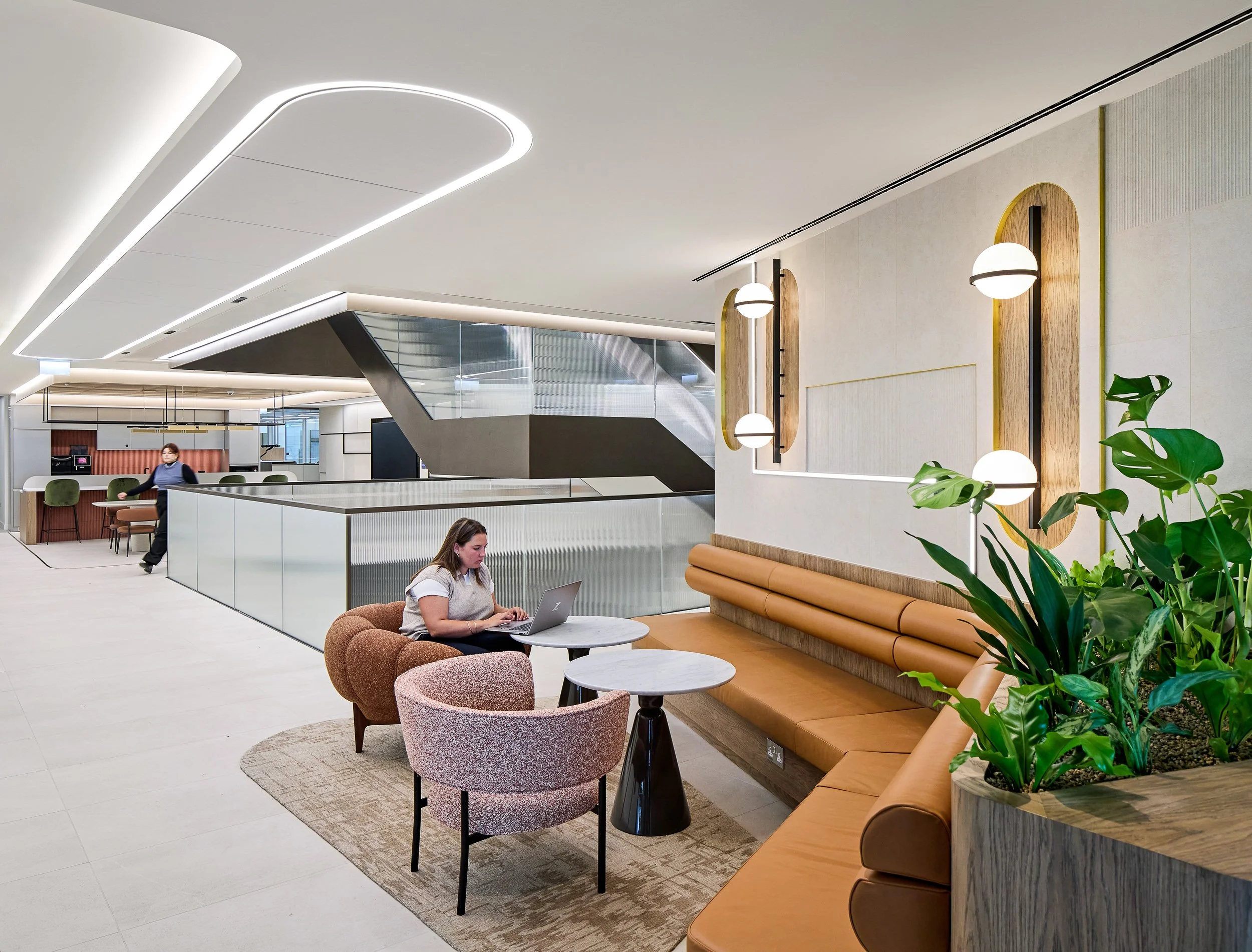 Set within the iconic 204-metre-high 8 Bishopsgate tower, the new London headquarters for Proskauer Rose LLP marked a significant milestone in the firm’s UK and European growth. Spanning four floors, the space accommodates 150 of the UK’s leading legal minds and features a dedicated client suite with world-class amenities, including a 200-seat auditorium, rooftop terrace, in-house restaurant, and multiple cafés.